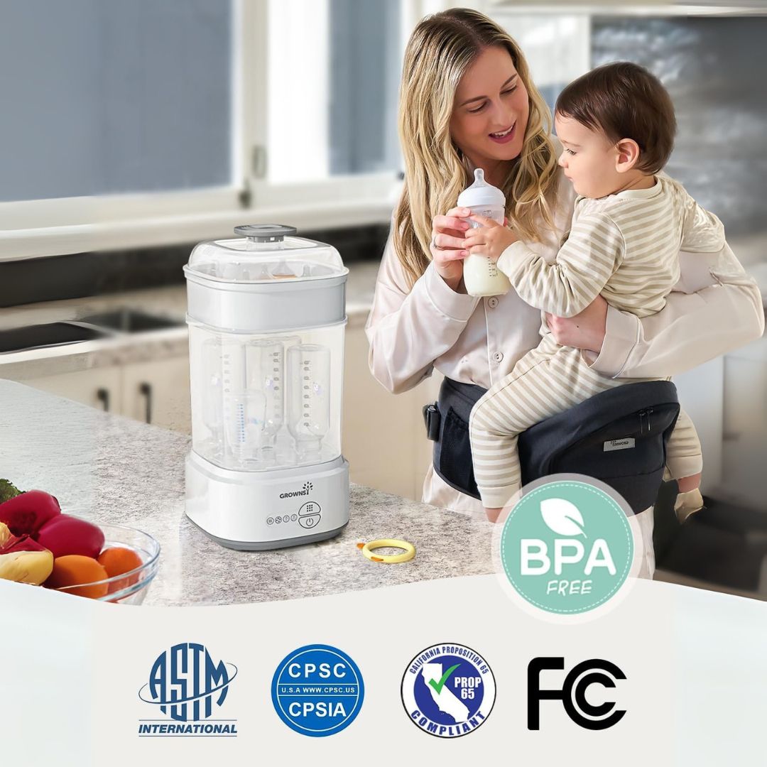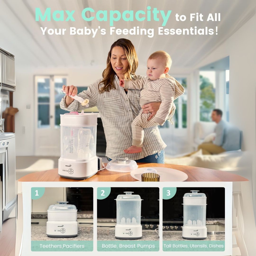 On average, sterilization and drying takes 8–10 minutes, giving you clean bottles faster than boiling or dishwashing.